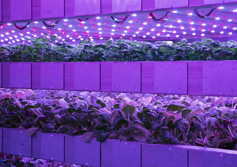 Indoor farming can range in size from large vertical multilayered to small shipping containers configured with lighting and growing facilities.
